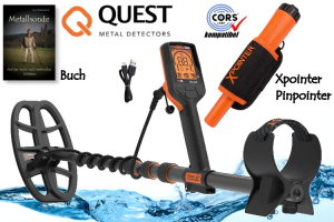 Quest X5 IDMaxX Metalldetektor & Xpointer Pinpointer (orange) & Schatzsucherhandbuch