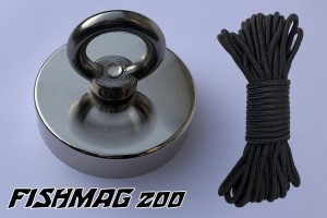 Bergemagnet FISHMAG 200 mit Nylonseil Bestseller! Hochwertiger robuster Magnet mit 200 kg Hebekraft. Perfekt geeignet für das Angeln nach Metallobjekten in Flüssen und Seen.